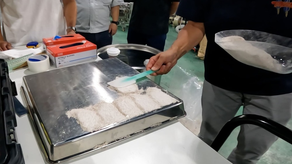 今回テストを実施した製粉会社様は、一部プレミックスの製造において、原料を袋に入れて空気を含ませ手で振って混合する方法を長年続けてこられていました。