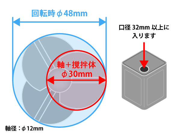 軸径φ10mmもしくはφ12mm対応のハンドミキサー、ドリル等に取り付けできます。