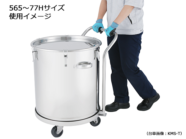 MONOVATE製ステンレス容器の36サイズ(内径360mm)から77Hサイズ(内径770mm)までの全12サイズに対応。ステンレス容器の運搬時にぜひご検討ください。