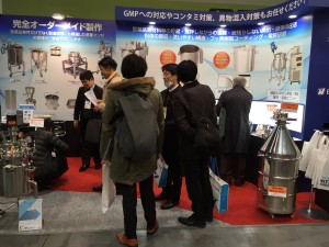 2年連続での出展となった今回は、液だれ防止ビーカーや透明アクリル蓋付密閉容器、撹拌容器などを展示致しました。カタログ・技術資料の配布も予想を上回り、多くのお客様にご好評いただきました。