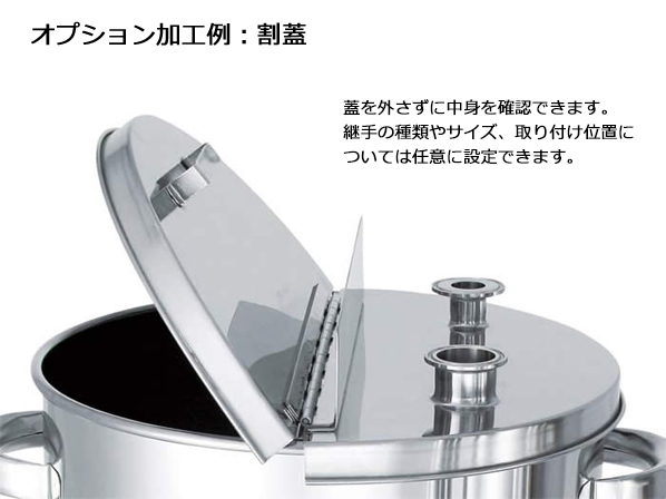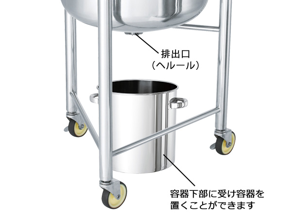 容器の底が丸くお椀のような形状(鏡板・鏡底)になっているステンレス容器のことを鏡板型容器といいます。 丸みのある底形状は、平底に比べて撹拌性や排出性に優れており、材料の一時貯蔵や撹拌混合などの工程に適しています。 その他の鏡板型容器のラインナップはこちら