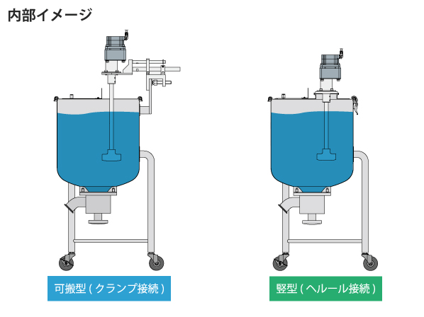 | 電気モータ式 | 竪型(ヘルール接続) | KU-DTM-SDE-[容器サイズ] | 撹拌機詳細 |