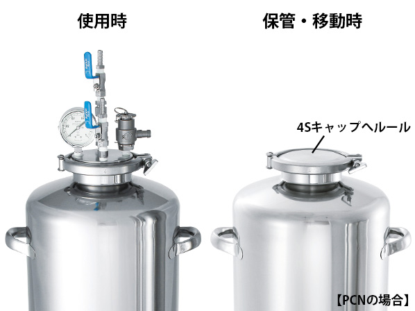 ねじ込み式の計器や配管を蓋に取り付けているため、簡単に設置できます。 加圧容器【PCN】【PCN-J】などに対応しています。