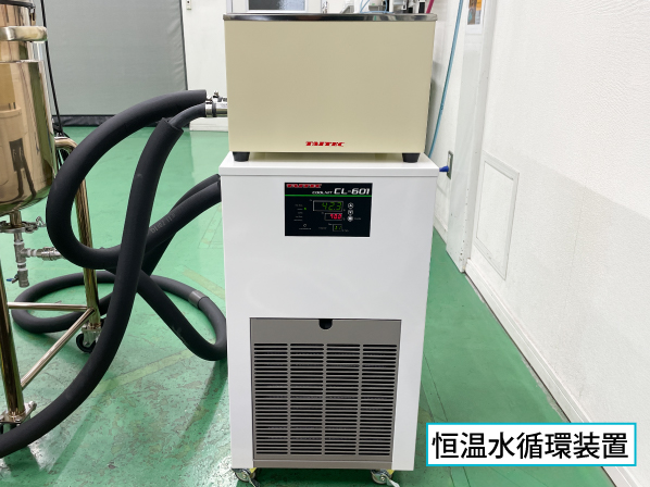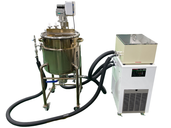 チラーで生成した温水(または冷水)をジャケット内へ循環させ、内容物を均一に間接加温します。