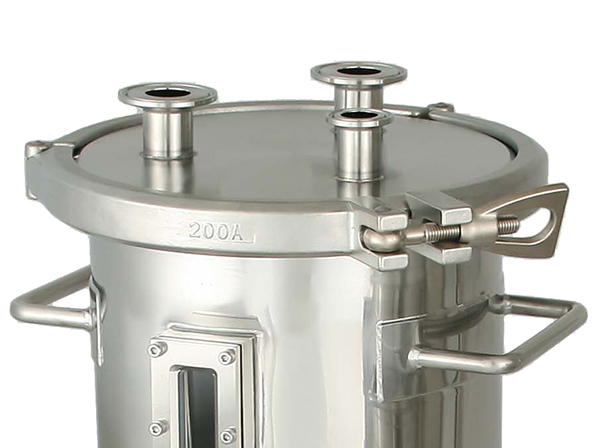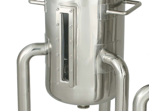・フィルターの状態が確認できるよう、容器側面に角フランジのぞき窓(サイトグラス)を取り付けています。