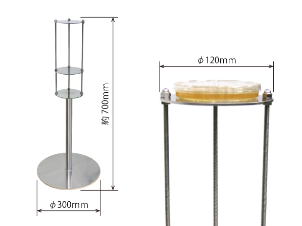 ○空中からの落下菌を測定するために使用する、置き台(スタンド)のオーダーメイド事例です。