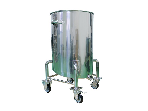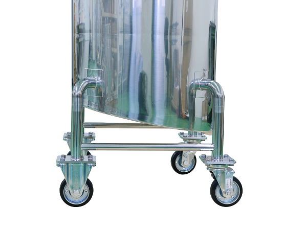 ○塗料分散工程で使用する、片テーパー型ステンレス容器のオーダーメイド事例です。