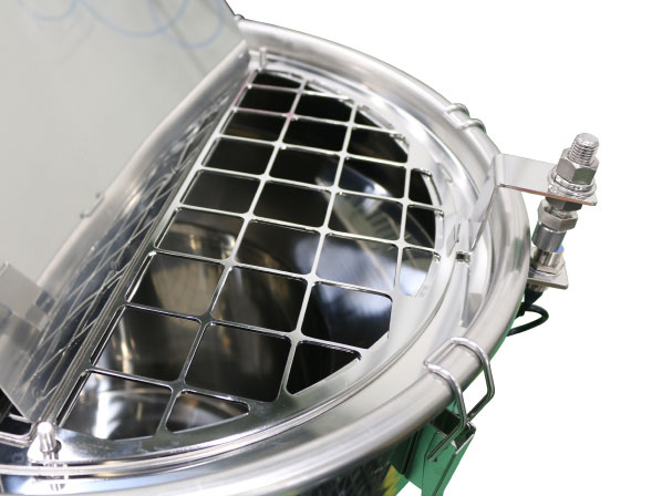 格子網が容器から外れると撹拌機の運転を停止し、回転している撹拌体が作業者の手などに触れる事故を防ぎます。