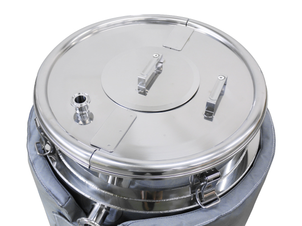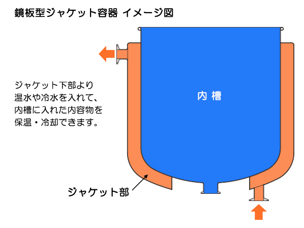 - ジャケット(外槽)部分へ温水循環装置を接続し、内容物を保温します。