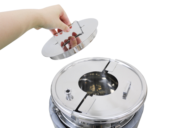 - 蓋中央部からは、お客様所有の撹拌機を投入できるようになっています。