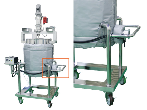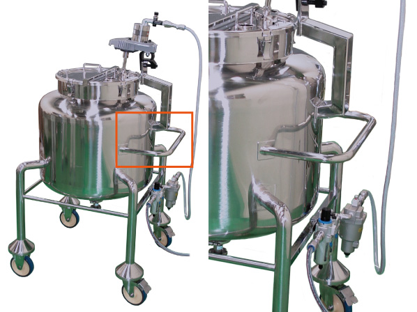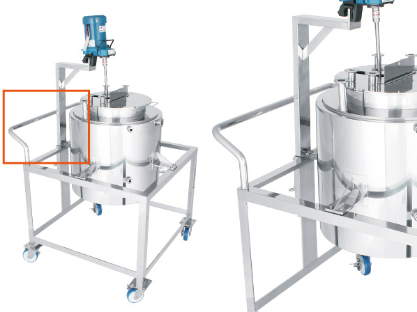 キャスター脚付の移動式タンク・架台・台車等に溶接で取り付けるハンドル。