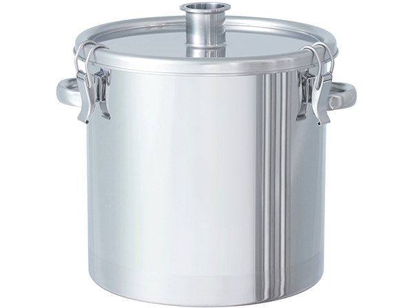標準仕様で蓋にヘルールや短管が付いたステンレス容器がございます。容量の変更などのオーダーメイドも可能です。