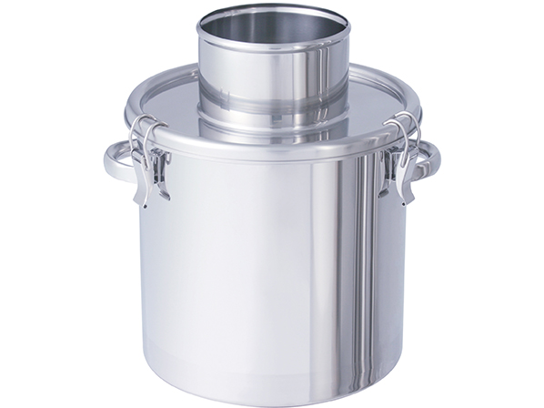標準仕様で短管付きのステンレス容器もございます。高さの変更、容量の変更などのオーダーメイドも可能です。