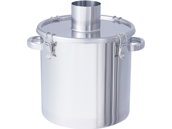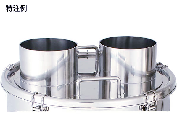 標準仕様で短管付きのステンレス容器もございます。高さの変更、容量の変更などのオーダーメイドも可能です。
