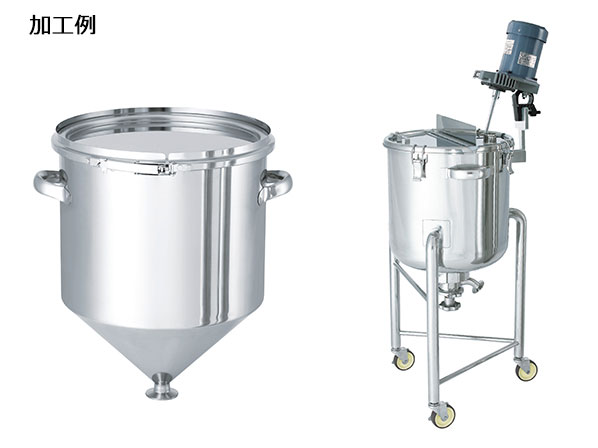ステンレス容器の底面へノズル(継手)を取り付けるオプション加工です。