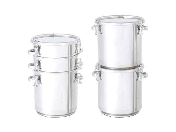 ○容量重視でスペースに合わせて内径と高さを変更した、ステンレス容器のオーダーメイド事例です。