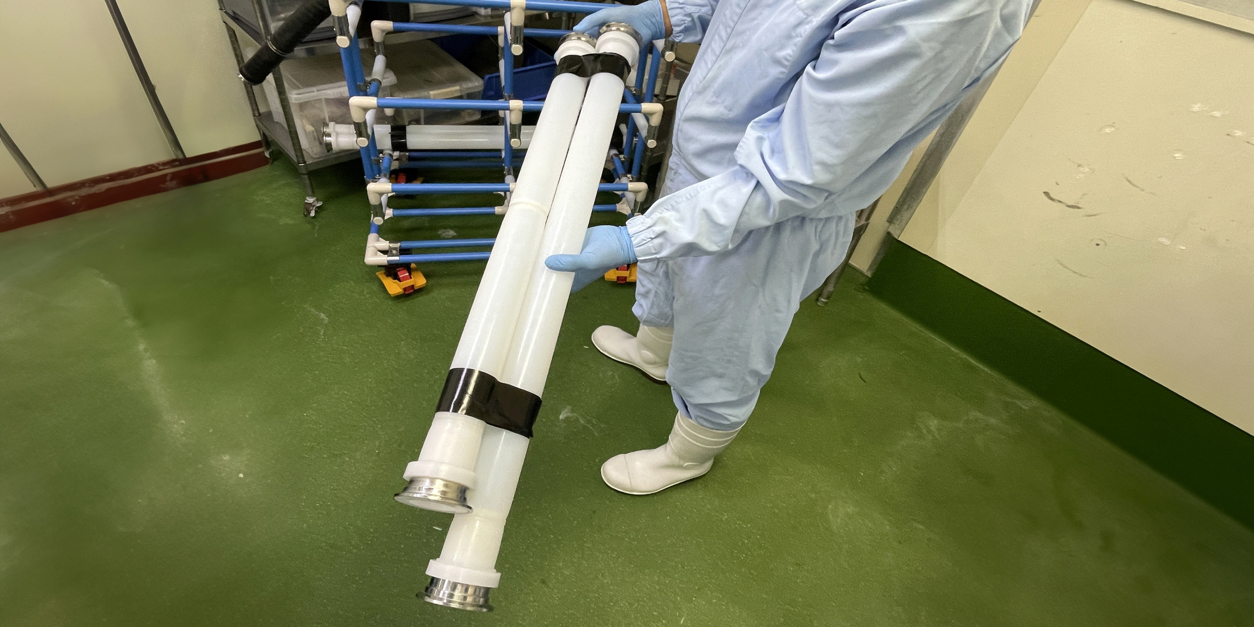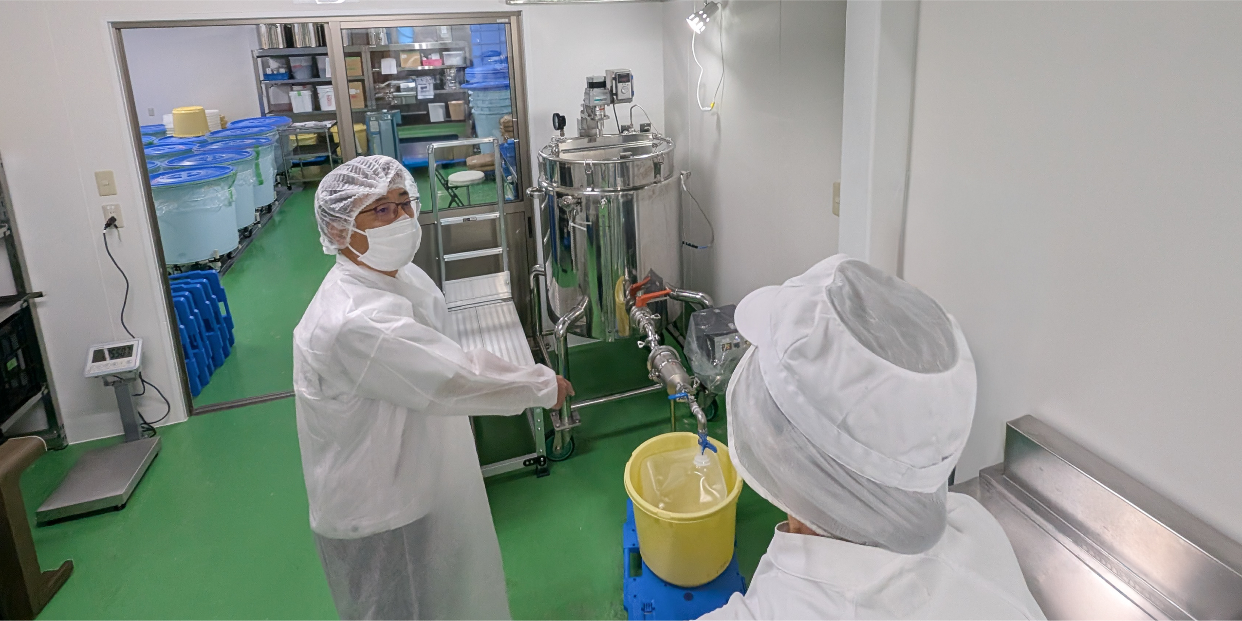 香料を製造する大釜からろ過する際に、カスタマイズで背の高さを低くしたタンクを使わせてもらっています。